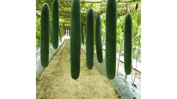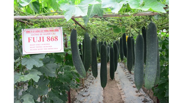 - Đặc điểm: . Giống sinh trưởng khỏe, nhánh khỏe, gọn, lá dày. Quả có màu xanh bóng, thon dài đều, đặc ruột. Thịt quả chắc, ăn ngon, không bị chua, chịu vận chuyển. Khối lượng trung bình quả 2,3-2,5 kg, dài quả 60-65cm, đường kính quả 7-8cm.
