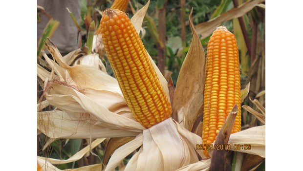 - Đặc điểm: Chiều cao cây 190-210 cm, chiều cao đóng bắp 90-110 cm. Bộ lá thoáng, xanh đậm, bền đến khi thu hoạch. Bắp dài 18- 21 cm, đường kính 4,5- 5,5 cm, có dạng trụ, bắp đậu kín hạt, hàng hạt thẳng, lá bi bao bắp kín. Hạt màu vàng cam, tỷ lệ kết hạt cao, hạt sâu cay. Số hàng hạt/bắp 12-16 hàng, số hạt/hàng 35- 45 hạt. Khối lượng 1000 hạt 330-360g. Chống chịu trung bình với một số loại sâu bệnh hại chính, phổ thích nghi rộng.